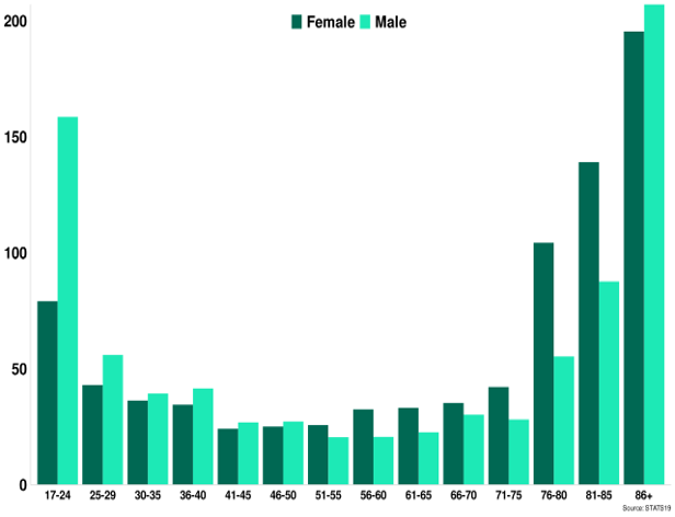 17 year olds and 85 year olds don’t have much in common, but dangerous driving is an exception.