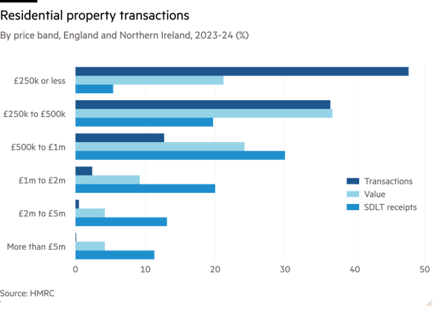 Homes priced at £1mn or more only make up 5 per cent of total residential transactions across the UK, but they account for nearly half the stamp duty collected.